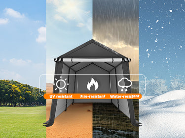 The carport canopy is made of PE Fabric, which is designed to withstand outdoor elements, including wind, rain, and sun exposure, ensuring your equipment such as vehicles or furniture, are shielded from harmful UV radiation, preventing fading and deterioration.