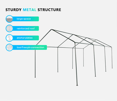 Built to last, our carports boast a sturdy all-metal frame with 1.5-inch diameter & 1.0mm thickness steel legs. With rust-resistant power-coated joints, your carport will withstand the test of time, providing reliable protection for years to come.
