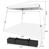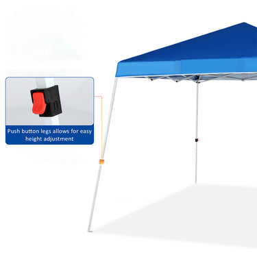 Featuring a spacious 10x10 feet area and sturdy slant legs for enhanced stability, it's designed for convenience and comfort. Enjoy versatile use for any outdoor occasion with our easy up canopy tent.