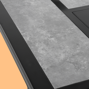A textured ceramic tabletop looks elegant while making cleaning and upkeep easy. The heat resistant surface is wipe clean and water proof.