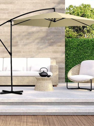 A cantilever umbrella is a type of outdoor umbrella with a side pole or support structure that allows the canopy to extend outward without a center pole obstructing the space underneath.