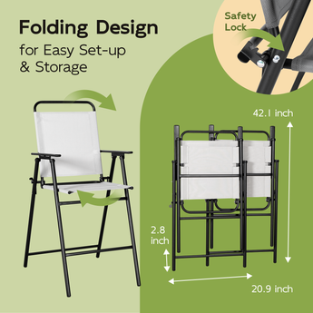 The foldable chairs are comfortable and convenient to store. Fitted with metal-reinforced locks, these chairs offer a safe and stable experience.