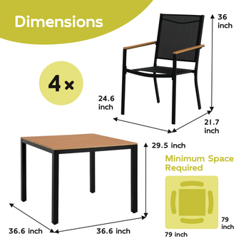 Our dining table set is available in four-seat (36.6 in x 36.6 in) or six-seat (61 in x 35 in) options. So, whether it's an intimate al fresco dinner, a full-on birthday bash, select your dining set that matches your needs.