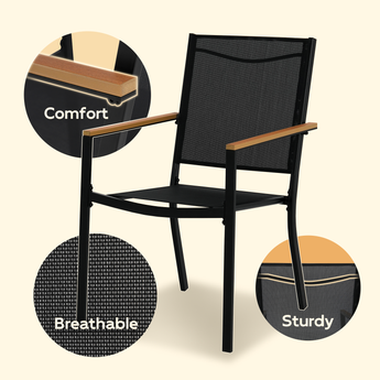 The Chairs are designed with long dinner parties in mind. The breathable fabric and ergonomical design of the chais gives support and comfort on hot summer days.