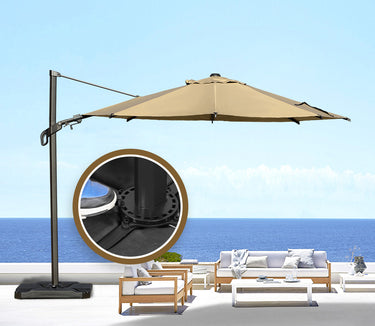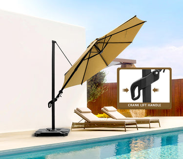 Abba Patio Vienna Cantilever Umbrella combines style and functionality, providing optimal shade for any outdoor space. Crafted for those who appreciate both style and convenience, this umbrella offers a seamless way to enjoy your outdoor spaces while staying cool and protected from the sun.
