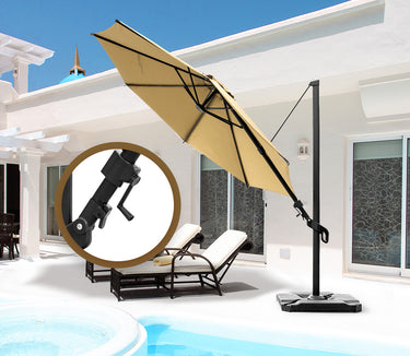 The umbrella features a smooth crank lift mechanism. You can easily open or close the umbrella with a few turns of the crank, making it user-friendly for one person. No heavy lifting is required!