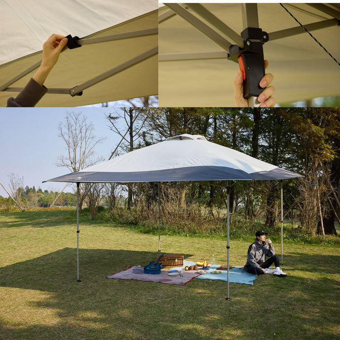 With a central hub that effortlessly locks out all four legs with just a single push! Say goodbye to complicated setups - now, assembling your canopy is a breeze. Plus, with 4 wheels, you can operate or move your shade in your demand.