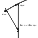 Easily adjust the shade with our convenient crank-lift system. Simply give it a few turns to raise the canopy to your desired height. Lowering is just as easy - no heavy lifting is required.