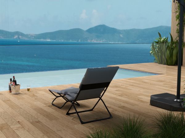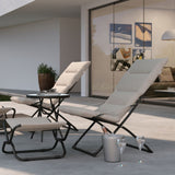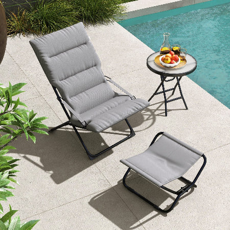 The Abba Patio beach chair set features a lounge chair and a compact stool, offering both relaxation under the sun and additional seating options for your comfort needs.