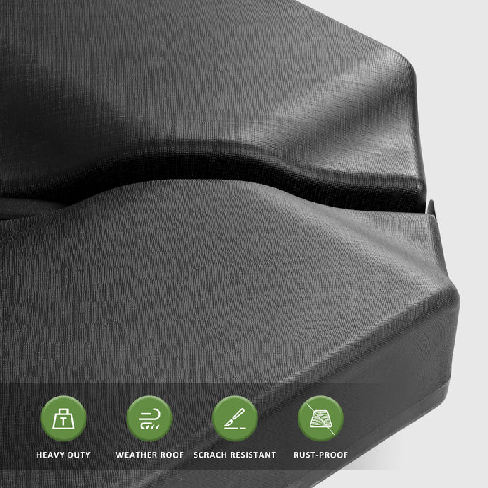Constructed from heavy-duty HDPE plastic, our bases withstand impacts and weather conditions, protecting your umbrella and ensuring long-lasting performance.