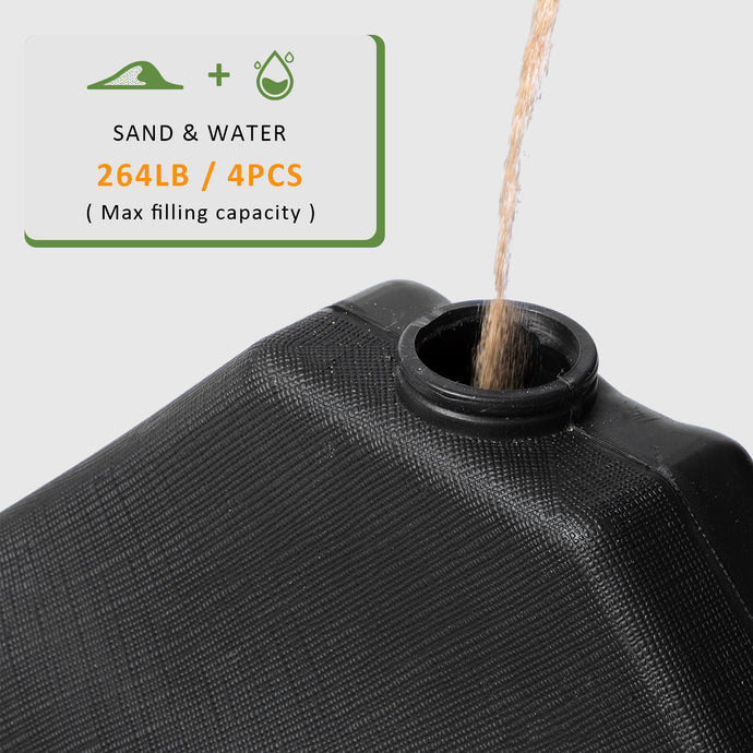With wide-mouthed fill spouts and leak-proof twist caps, ballasting with sand or wet sand is a breeze, providing up to 264 pounds of weight for reliable anchoring.