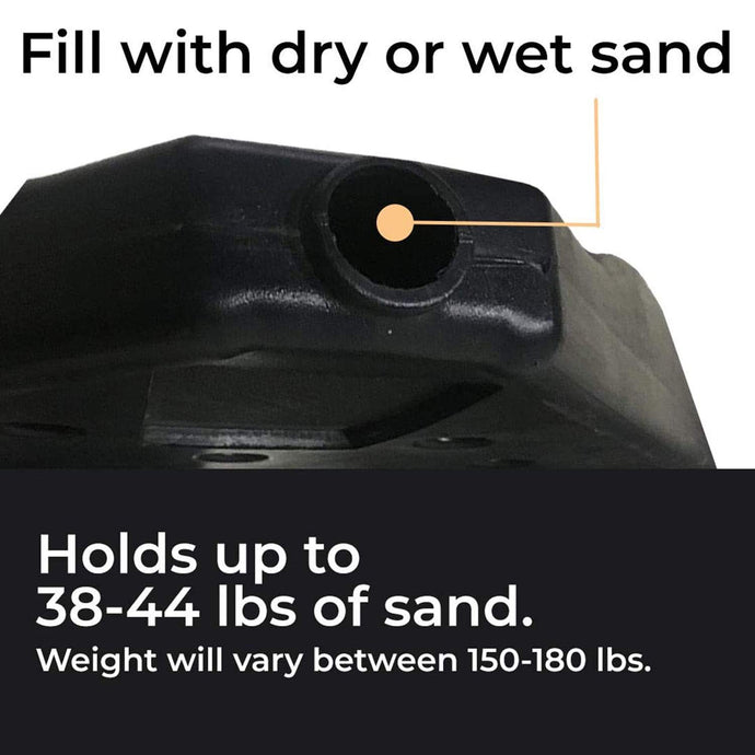 With wide-mouthed fill spouts and leak-proof twist caps, ballasting with sand or wet sand is a breeze, providing up to 160 pounds of weight for reliable anchoring.