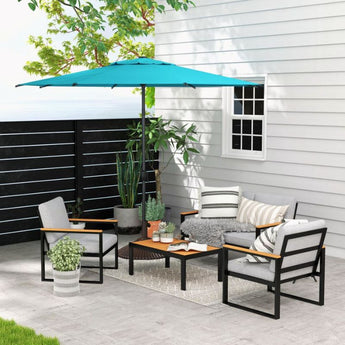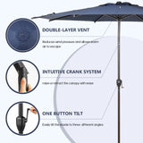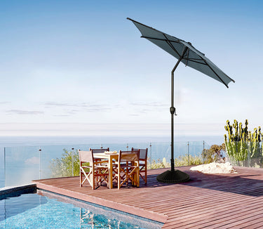 The tilt mechanism follows suit with an intuitive push-button design. A brief press angles the umbrella outdoor patio however you like. Find just the right shading whether seated or standing.