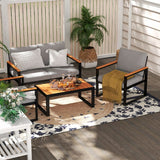 Elevate your living space with this elegant patio furniture set. Its modern design seamlessly blends aluminum and wood for a sophisticated, natural look that complements any decor, indoors or out. Showcase your impeccable style and create an inviting atmosphere for relaxation or entertaining.