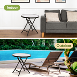 Yes, it is perfect for both indoor and outdoor use! The powder-coated steel frame is designed to withstand outdoor conditions, while the waterproof glass top makes it easy to clean and maintain.